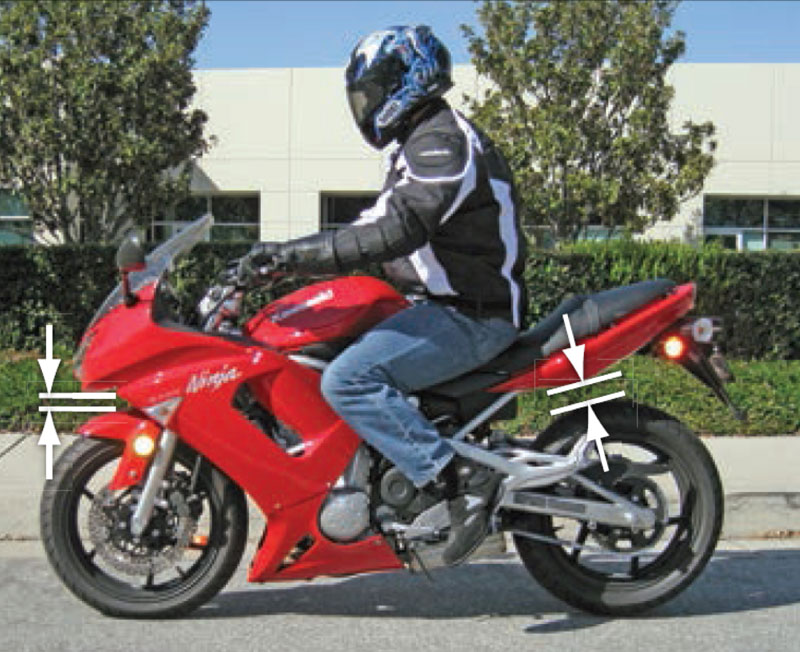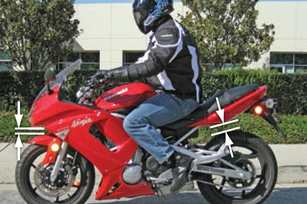 126The best way to achieve the shortest braking distance is to use the controls in a way that produces maximum braking pressure at the front and rear brakes simultaneously without skidding either wheel. Making an emergency stop is an important skill. Practice often in a safe area. Keep your body centered and look ahead. Squeeze your legs against the gas tank to keep from sliding forward on the seat.